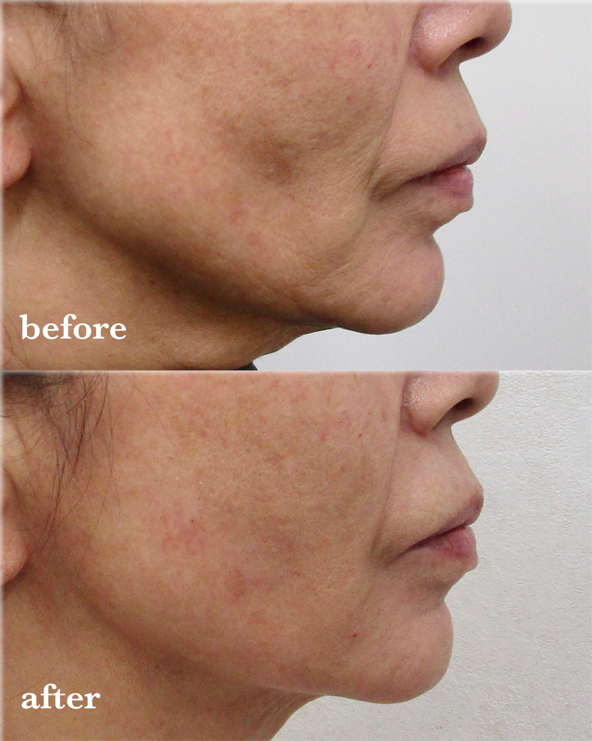 顎先の丸さが緩和され、横顔の輪郭が柔らかい印象になったと思います。